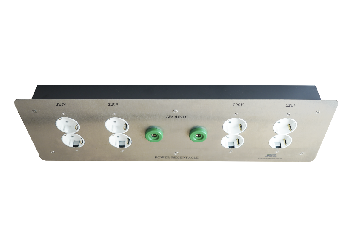 - Bảng ổ cắm: Là bộ phận lắp trên tường/vách hoặc trên hộp đầu giường. Mặt inox dễ vệ sinh lau chùi. Bao gồm các ổ cắm và ổ cắm tiếp địa tăng cường (số lượng có thể điềuchỉnh theo yêu cầu của khách hàng).