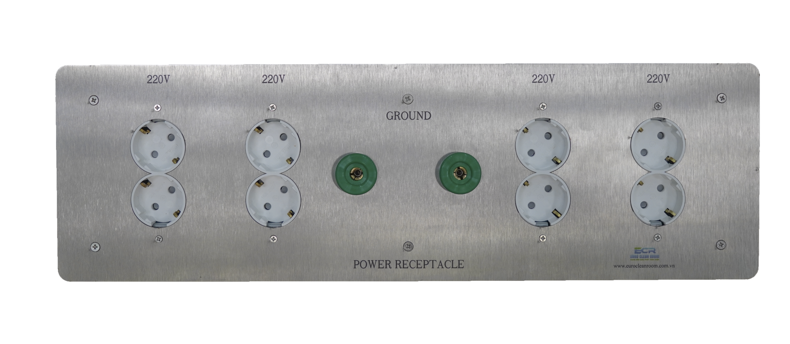 - Bảng ổ cắm: Là bộ phận lắp trên tường/vách hoặc trên hộp đầu giường. Mặt inox dễ vệ sinh lau chùi. Bao gồm các ổ cắm và ổ cắm tiếp địa tăng cường (số lượng có thể điềuchỉnh theo yêu cầu của khách hàng).